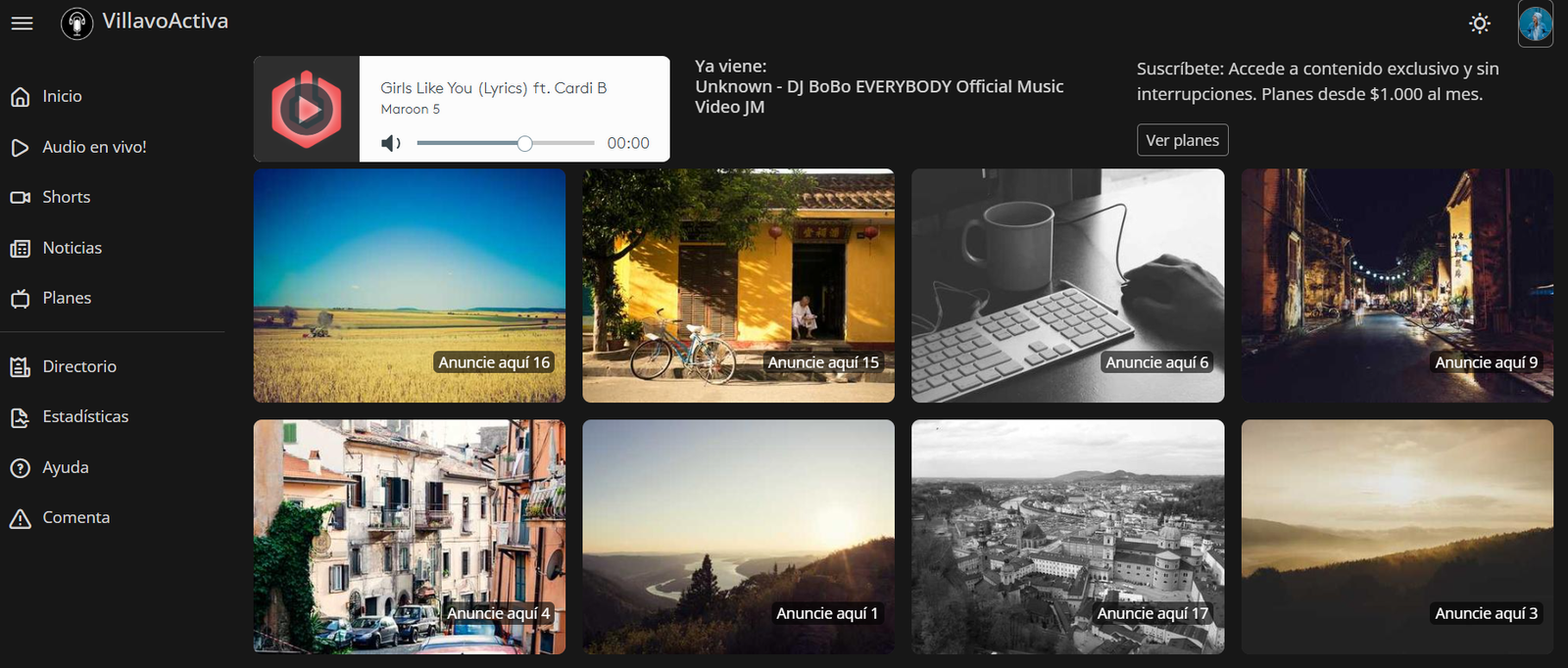 Tu banner aparecerá mientras las personas escuchan nuestra programación variada y en vivo desde Villavoactiva. Ocupa un espacio visible en pantalla junto al reproductor, y se muestra de forma rotativa con otros anunciantes.